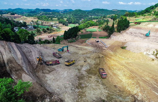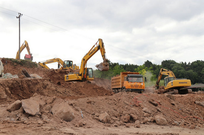 TJ-5標(biāo)射洪互通路基挖方、填方施工場(chǎng)景(孫平安攝)