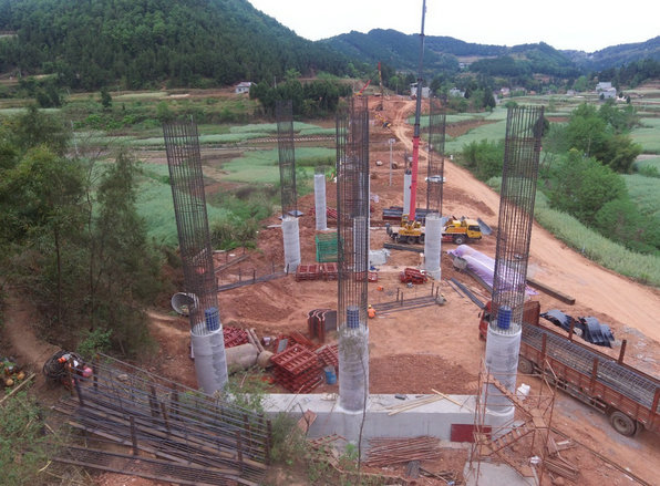 TJ-5標(biāo)射洪互通橋梁樁基、墩柱施工場(chǎng)景(孫平安攝)