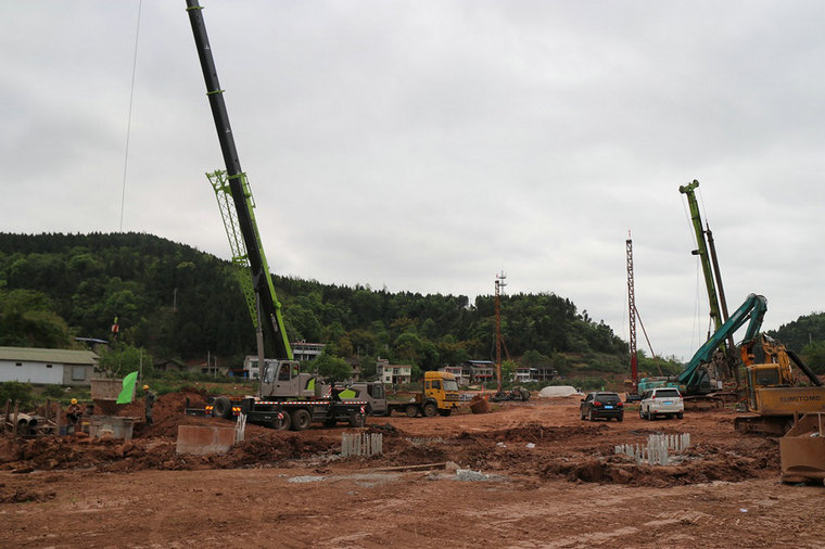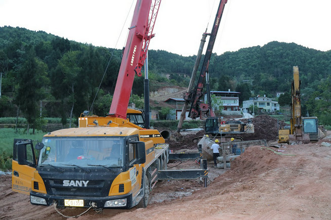 TJ-6標(biāo)沱牌互通橋梁樁基工程施工場(chǎng)景(孫平安攝)