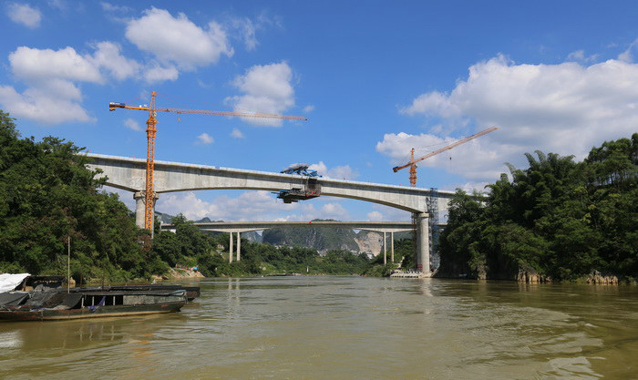 主跨156米的連續(xù)梁似一道美麗的彩虹,飛越紅渡紅水河兩岸,成為了馬山、都安兩縣的地標(biāo)建筑。