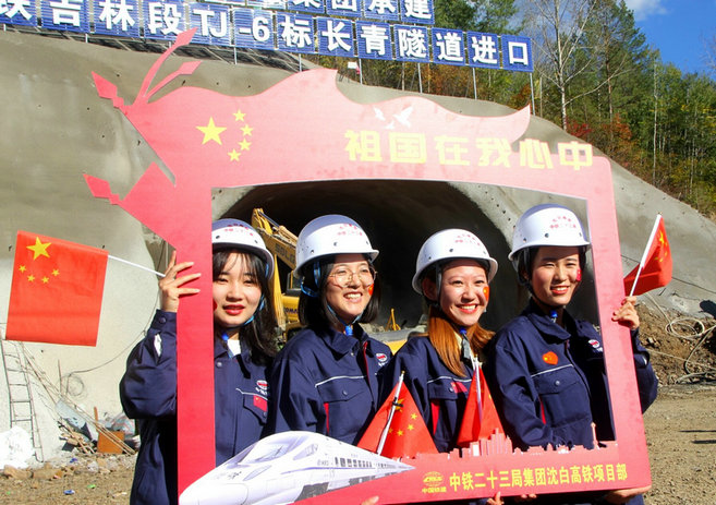連日來,在沈白高速鐵路建設(shè)工地面對鮮紅的國旗,堅守施工生產(chǎn)一線的廣大參戰(zhàn)員工心潮澎湃、熱血沸騰,為祖國的日益強大倍感驕傲和自豪。隧道洞口、鉆機旁、辦公區(qū)廣場,幸福燦爛的笑容,定格在精心設(shè)計的五角星造型里,在充滿喜悅的“祖國在我心中”主題相框內(nèi),在精神抖擻整齊劃一的隊列中,展示了中國鐵建員工團結(jié)向上的良好精神風貌。