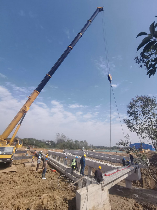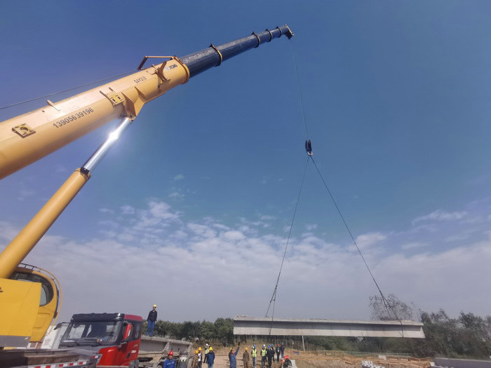 圖為第一片梁架設(shè)情景3號橋首片T梁的成功架設(shè)預(yù)示著峨山路項目將正式進(jìn)入橋面系施工階段,為后續(xù)生產(chǎn)打開了工作面,也為年底前完成產(chǎn)值目標(biāo)打下了良好基礎(chǔ)。