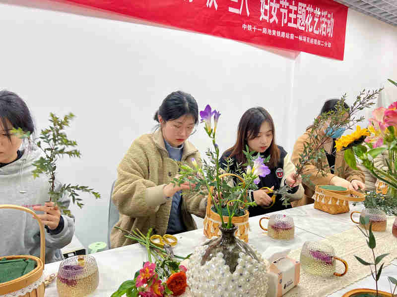陽春三月,百花爭鳴。3月8日,在第99個國際“三八”婦女節(jié)來臨之際,為更好地展現(xiàn)池黃項目女員工風采,以積極向上的精神面貌開展各項工作,擁有健康、充滿活力的生活態(tài)度,項目組織全體女員工及家屬開展了“情滿一線、花語芬芳”主題插花活動。