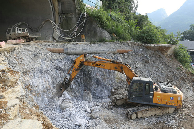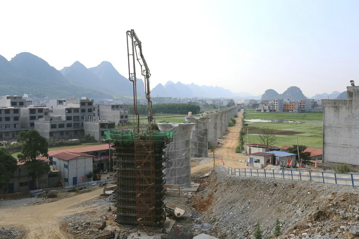 圖為運(yùn)梁車行駛在路基上在我國(guó)的西南地區(qū)廣西、貴州、云南等地,廣泛分布著一種特殊地質(zhì)結(jié)構(gòu)——喀斯特地質(zhì),這是大自然鬼斧神工的杰作。但在工程施工領(lǐng)域,喀斯特地質(zhì)被公認(rèn)為“世界級(jí)施工難題”。
