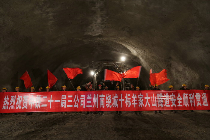 圖為蘭州南繞城高速牟家大山隧道貫通