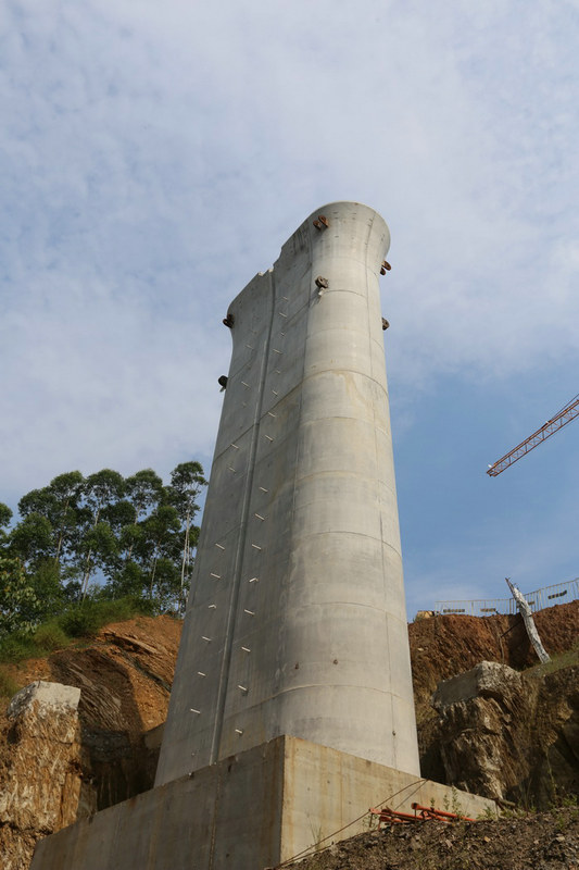 為了施工大橋,唯一的辦法就是對(duì)混凝土進(jìn)行二次倒運(yùn),從大罐車倒到小罐車。為方便倒料,熊寧專門修建了一個(gè)平臺(tái),租來一臺(tái)小罐車;大罐車開到平臺(tái)上,出料口與小罐車進(jìn)料口對(duì)接,一大罐車混凝土,要分4次才能倒完。