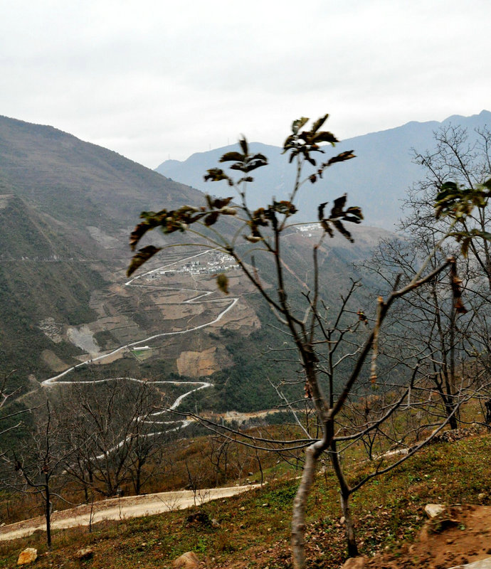“到了吧”我問村長,“這只是搬遷下來的很小一部分”村長說著,手指著對(duì)面那座大山近山頂?shù)牡胤礁嬖V我“那才是我們村……”。順著他手指的方向,我找尋了好一會(huì)兒,才在山峭間發(fā)現(xiàn)了一個(gè)個(gè)的小小凸起,是幾乎與山體融為一體的村民住房。