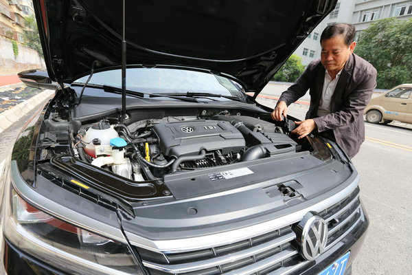 引擎蓋內(nèi)也是一塵不染,圖為老霍檢查發(fā)動(dòng)機(jī)。