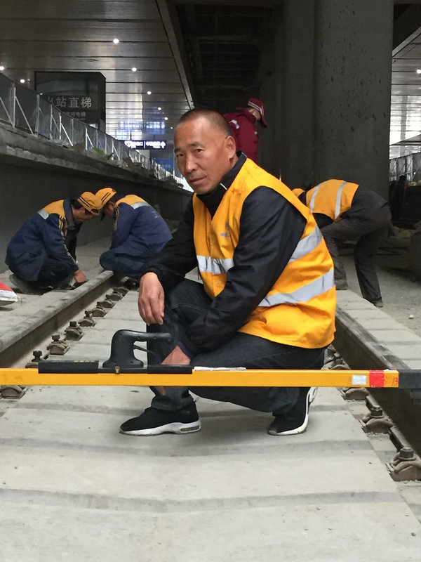 “現(xiàn)在施工都是機(jī)械化了,鋪軌有鋪軌機(jī),撥道有撥道機(jī),線路整修大機(jī)過后水平、方向都好了,尤其是老大難的既有線改造現(xiàn)在機(jī)械化程度也比較高,質(zhì)量也比原來好,每次線路開通前大機(jī)三搗兩穩(wěn)就提速了。”。