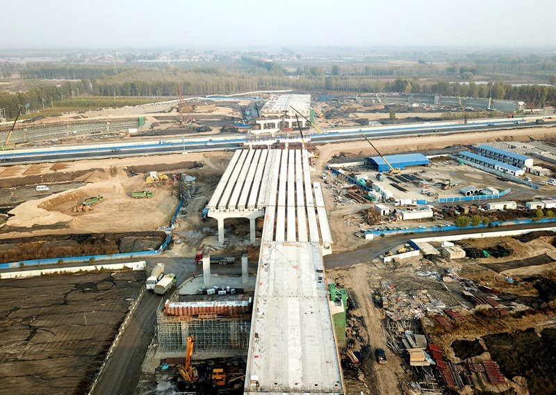 北京新機(jī)場北線繁忙的施工現(xiàn)場