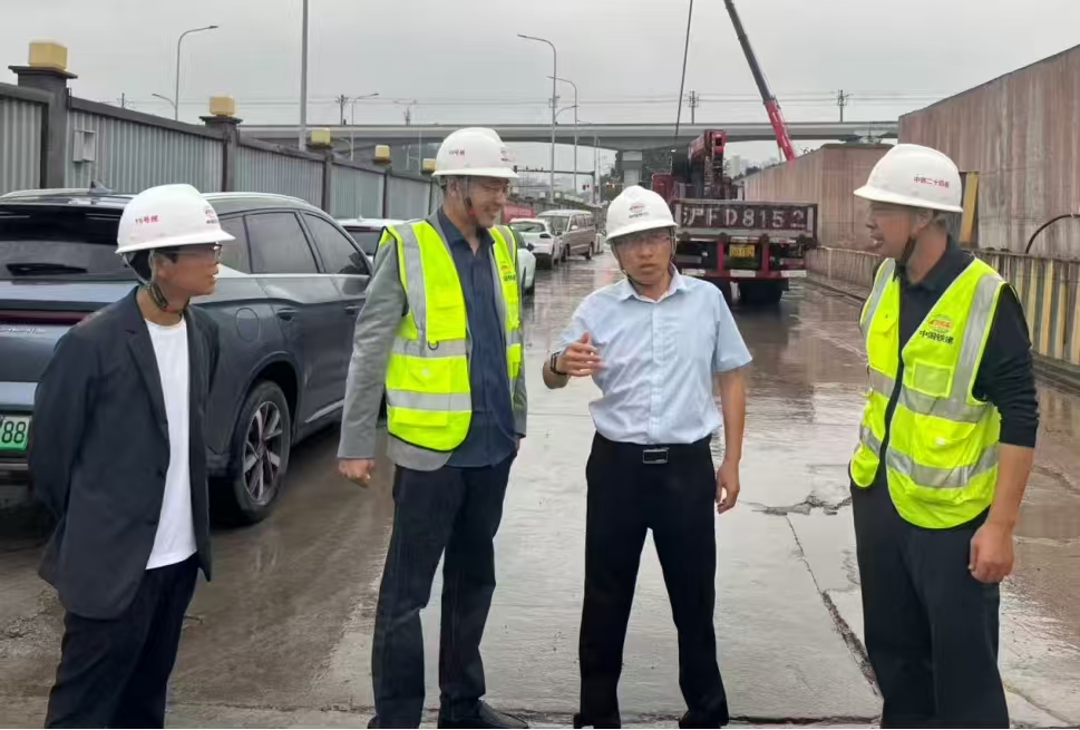 王磊(左2)在現(xiàn)場協(xié)調(diào)解決有關(guān)施工難題