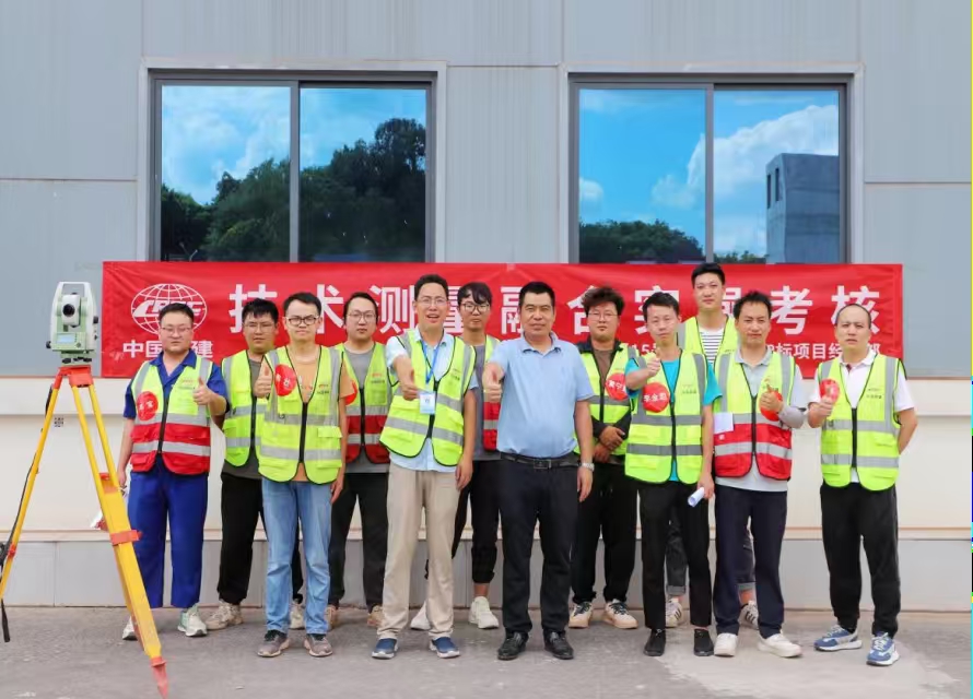 李均強(qiáng)(右4)組織項(xiàng)目部技術(shù)人員專業(yè)技術(shù)實(shí)操考核