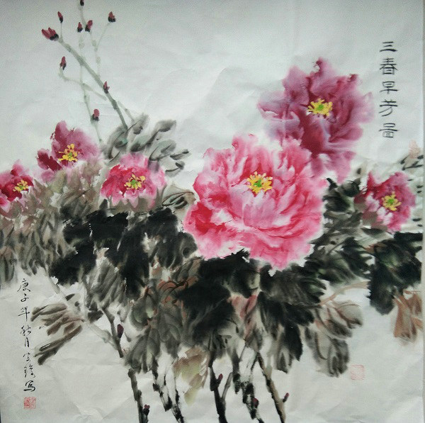 正在閱讀:國畫一組斗方牡丹