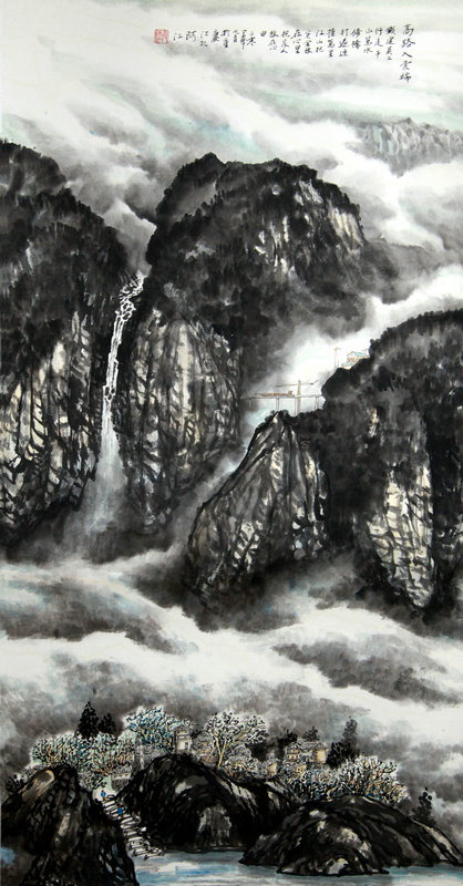 1989年的一天,我看到工會關(guān)于組織收集第九屆大路畫展作品的通知后,決定躍躍欲試,并精心準(zhǔn)備了一幅山水畫,通過工會,到上級工會,再轉(zhuǎn)到北京。但許久以后,卻收到了退回的作品,這是我對大路畫展最初的認(rèn)知,是那么遙遠(yuǎn)、那么深不可測。但從那以后,我不僅沒有打退堂鼓,反而更增添了畫畫的信心和決心,和廠里其他幾個愛好者一起,報考了西南師范大學(xué)美術(shù)專業(yè)的自學(xué)考試,打那以后的無數(shù)個日日夜夜里,我們一群年輕人奮戰(zhàn)在畫板前、宣紙邊,汗水與驕陽、毛筆與彩墨,大家沉浸于五顏六色的歡樂和痛苦之中。終于,一份付出、一份收獲,三年之后,相繼拿到了美術(shù)專業(yè)的學(xué)歷證明,并從此走上了一條多彩的大路。