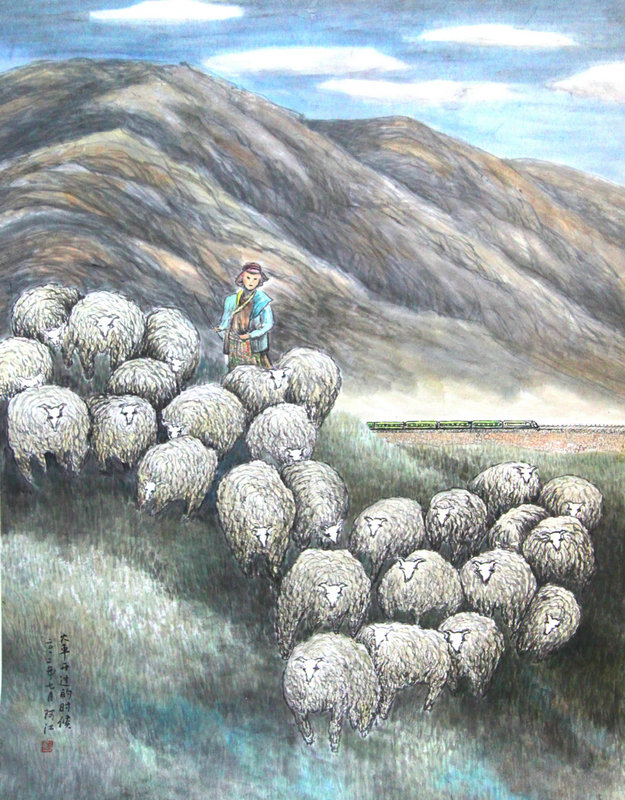 懷著崇敬之情,創(chuàng)作很快深入進(jìn)行。我的一幅反應(yīng)青藏鐵路建設(shè)的中國畫不僅入選了第十三屆大路畫展,還獲得了優(yōu)秀獎,當(dāng)我站在中國美術(shù)館展廳,看到自己的作品登上大雅之堂時,成功的喜悅洋溢于外表。
