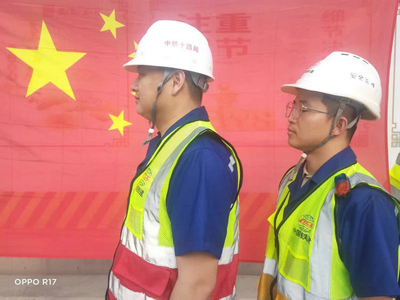 項目黨支部書記韓崇生帶領(lǐng)項目先進工作者閆其敢開展“愛國旗、跟黨走”留影活動