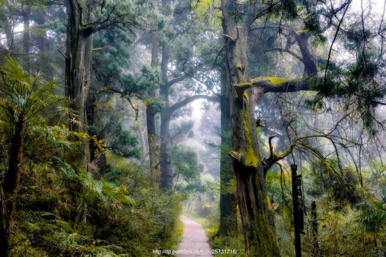 據(jù)《翠云廊大觀》一書記載:“生長在鋪滿石板的古棧道兩側(cè)直沖云霄的古柏,平均18米一棵,共有9233棵,巍巍壯觀。”楊仕甫先生在《劍閣不解之謎》一文中也有詳盡的介紹:“這些柏樹絕大多數(shù)在20米以上,最大胸徑近200厘米,單株最大積木近30立方米。……”古柏雖然經(jīng)歷了一個又一個世紀(jì)的風(fēng)霜雨雪、天災(zāi)人禍,飽經(jīng)時世滄桑,卻頑強(qiáng)地生存了下來,它是人類和自然界親密的伙伴,它無私地為人類奉獻(xiàn)著攝人魂魄的英姿,灑下一片綠蔭,實(shí)在是人類之幸事。當(dāng)人們或漫步或乘車從西、南、北幾個方向前往劍閣的途中,便可驚奇地看到哨兵一樣林立在道路兩側(cè)蒼翠挺拔、枝葉茂盛、風(fēng)姿卓著的蒼老中透著幾分朝氣的古柏。一棵棵古柏,或昂首挺胸,或含羞垂首,或精神抖擻,或傲視蒼穹,千姿百態(tài),風(fēng)情萬種,令人叫絕!記得第一次從廣元去劍閣的路上,我所乘的中巴在劍門關(guān)出了車禍,我雖未受重傷,卻也幾乎將魂魄給嚇掉。心情壞到了極點(diǎn)??墒钱?dāng)我換乘的另一輛中巴行駛在長有古柏的古棧道上時,我望著中巴兩面仿佛是夾道歡迎遠(yuǎn)方客人的頂天立地的古柏,忘記了疼痛,忘記了煩惱,一身的輕松,心情格外好,是一段時間以來最高興的一天。置身于其間,有一種與欣賞花草、山水、美人不一樣的感覺。觀古柏,好心情,人一下似乎變得年輕了許多。多看幾次古柏,對凈化人的品行、心靈大有益處。從古柏身上還可吸取一種戰(zhàn)勝自我、征服困難的信心,重新找回失去的自信。