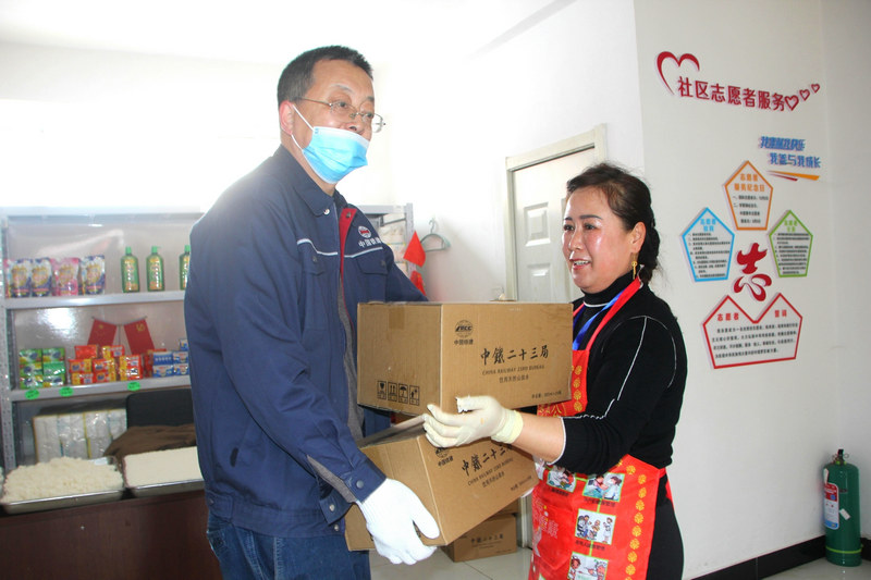 “盒飯來了,感謝中鐵二十三局的愛心奉獻,志愿者可以吃上熱乎飯了”吉林省白山市江源區(qū)孫家堡子街道盛豐社區(qū)書記郝宏接過熱氣騰騰的米飯及礦泉水表達了由衷的謝意。