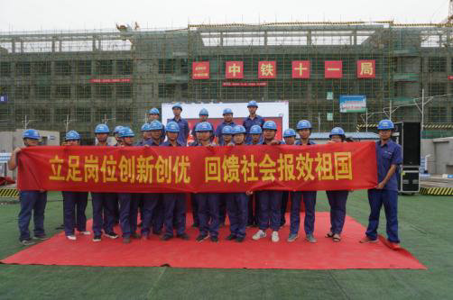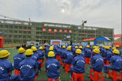 做承諾環(huán)節(jié),公司黨委副書記、工會(huì)主席趙小紅、項(xiàng)目經(jīng)理劉磊、書記李雁帶領(lǐng)項(xiàng)目員工紛紛在“銘記崢嶸歲月,爭做大國棟梁”的紅色橫幅上簽名,寫下莊嚴(yán)承諾。隨后,正式啟動(dòng)“大干四季度勞動(dòng)競賽活動(dòng)”儀式,項(xiàng)目總工程師江永宣讀勞動(dòng)競賽節(jié)點(diǎn)計(jì)劃,項(xiàng)目黨工委書記李雁宣讀大干四季度勞動(dòng)競賽倡議書,項(xiàng)目經(jīng)理劉磊代表項(xiàng)目部進(jìn)行表態(tài),趙主席向青年突擊隊(duì)代表授旗,號(hào)召項(xiàng)目全體員工要確保項(xiàng)目建設(shè)目標(biāo)順利完成,為下半年施工大干奠定堅(jiān)實(shí)基礎(chǔ)。