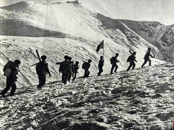 惡劣的施工環(huán)境,并沒有阻止我們向大山心臟挺進(jìn)的腳步,上導(dǎo)道坑貫通了,中導(dǎo)坑也以戰(zhàn)士們前無險阻的排山倒海之勢被拿下。拱部和邊墻襯砌由14連向前推進(jìn)。我們連負(fù)責(zé)電纜槽和隧道底部1米多厚的混凝土施工。與14連戰(zhàn)士一樣,肩扛、兩人抬一只籮筐,從洞外運砂石料、水泥,在現(xiàn)場鋪展開的兩塊鐵皮上用鐵鍬攪拌混凝土。我們的汗水流個沒完,工作服外表幾乎沒一處完好,棉花大多數(shù)裸露在外,戰(zhàn)友們身穿沾滿灰塵的棉衣走出隧道回營區(qū)的路上,如果只看上衣部分,以為是將綿羊皮裹在了身上。汗水伴著水泥灰的一張臉,不走近細(xì)看,根本認(rèn)不出是誰。