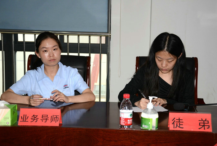 業(yè)務導師季龍菊(左)與林金宇簽訂見習協(xié)議 呂奎元攝