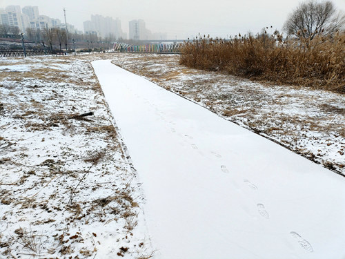 回看雪地上的印跡