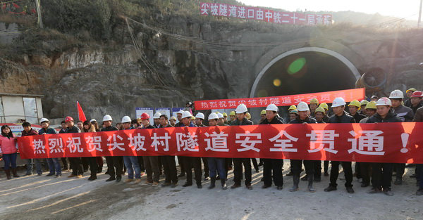 建設(shè)者慶祝尖坡隧道貫通 2013-2015年施工大干期間,工地每一處都是人頭攢動(dòng),機(jī)械轟鳴,僅跳廠坡大橋施工大干期間,上場(chǎng)民工多達(dá)200多人,工地上整日人聲鼎沸,呈現(xiàn)出一派熱火朝天的大干景象。在搶建六線路基施工大干期間,項(xiàng)目部組織了一百余臺(tái)機(jī)械設(shè)備和車輛,現(xiàn)場(chǎng)管理人員三班倒,每天24小時(shí)堅(jiān)持奮戰(zhàn),日挖運(yùn)土石方量達(dá)2萬(wàn)