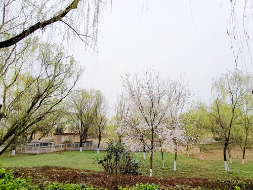 杏樹枝頭掛滿花絮