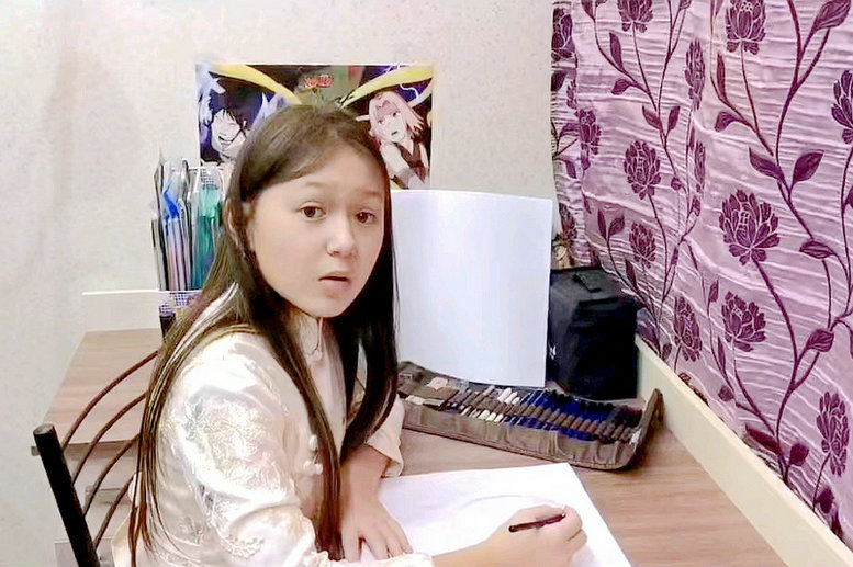 我的孫女江娜(диана),今年13歲,是莫斯科學(xué)校7年級(jí)學(xué)生。她天資聰穎,眼睛里透著機(jī)智和靈氣,她的可愛(ài)和聰明常常讓我們?nèi)胰烁械津湴?。她不僅才智出眾,學(xué)什么都能迅速掌握,更難得的是,她總能給我們帶來(lái)意想不到的驚喜。自幼兒起,她便對(duì)書(shū)籍情有獨(dú)鐘,尤其偏愛(ài)連環(huán)畫(huà),一旦捧起便沉浸其中,半天不肯釋手。兩歲時(shí),她向媽媽索要紙筆,嘗試著模仿畫(huà)畫(huà)。從那時(shí)起,她的小書(shū)桌上便時(shí)常堆滿(mǎn)了她的涂鴉之作。三歲那年的春節(jié),她帶著滿(mǎn)滿(mǎn)的期待回國(guó)。一進(jìn)門(mén),就興奮地大喊爺爺奶奶,迫不及待地展示起她為我們準(zhǔn)備的過(guò)年禮物——一幅用彩筆畫(huà)的北京天安門(mén)。畫(huà)面逼真得讓人驚嘆不已,根本不像出自一個(gè)3歲小孩之手。