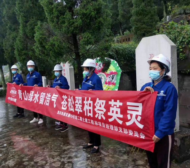 清明時節(jié),杜曉言與中鐵十四局集團五公司重慶項目部員工代表前往重慶合川鐵道兵烈士陵園祭奠向鐵道兵烈士黃景志等