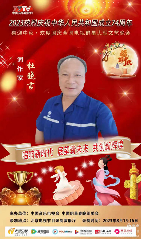 杜曉言,軍旅詞人,騰訊音樂人,同時為中國音樂著作權(quán)協(xié)會、中國職工音樂家協(xié)會會員及鐵路工程建設(shè)網(wǎng)通訊員。 1962年生于山東鄆城,1981年入伍,鐵道兵經(jīng)歷為創(chuàng)作提供靈感。1986年起從事歌詞創(chuàng)作,累計超3000首作品,見于《詞刊》等刊物及海南衛(wèi)視等媒體。代表作《祖國,我為你自豪》《我的中國》等屢獲殊榮,《西雙版納的歌謠》等被改編為葫蘆絲名曲,《水鄉(xiāng)江南》等入選大學(xué)教材。出版《選擇美好》等歌詞集及《心箋載夢》文集,成就獲主流媒體報道,作品引發(fā)廣泛共鳴。