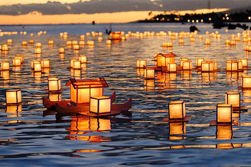 紙燈飄向天邊的星空