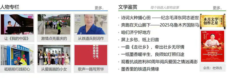 自那以后,我的腳步總追著鐵道的方向,我的筆墨總繞著建設者的模樣。揣著筆記本跑遍工地,聽鋼架上的工友講攻堅克難的過往,看夕陽把橋墩染成溫暖的橘黃,再在深夜的燈下,把這些帶著鋼軌溫度的瞬間,一字一句釀成文字。未曾想,我采寫的新聞人物專欄,會在網(wǎng)站占了那般重的分量,字里行間的鐵道精神,成了企業(yè)闖市場時最亮的光;更未曾想,閑暇時寫的詩詞散文,會屢屢摘下“本月文學之星”,那些藏在筆墨里的野花、月光,還有工友們黝黑的笑臉,都成了我與鐵道網(wǎng)最深情的對話。