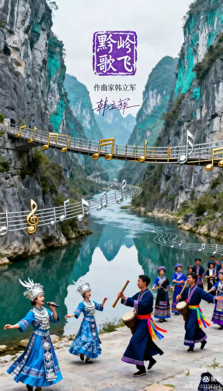 寫下《黔嶺飛歌》的最后一句“每寸土地都含笑”時(shí),窗外正飄著初秋的細(xì)雨,恍惚間竟與許多年前和韓立軍老師合作《苗寨等你來》時(shí)的場景重合——同樣是為貴州而歌,同樣是在對這片土地的眷戀里,打撈最鮮活的民族記憶,也同樣懷揣著“讓旋律扎根民族土壤”的共同創(chuàng)作初心。