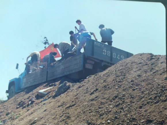 防洪大堤上揮汗如雨
