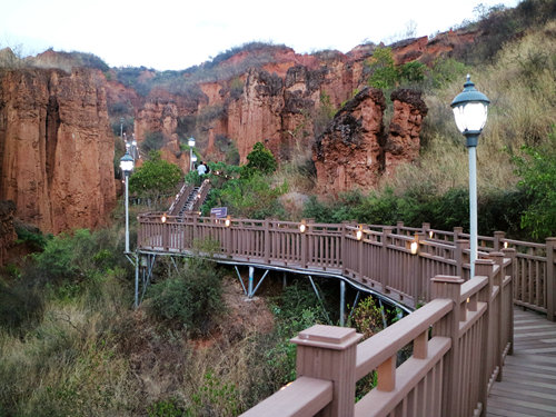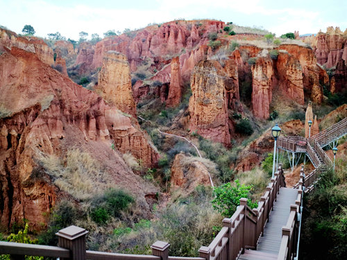 行在步道之間,猶如走進了大自然雕塑的藝術(shù)魔宮,沿著步道在土林中漫游。穿越其間,仰頭可觀賞到“少女梳妝”、“嫦娥奔月”、“八仙過海”、“仙女下凡”、“戰(zhàn)馬騰空”、“雙獅望月”、“雄鷹展翅”等等奇異的造型,如同闖進了神奇莫測的仙境。