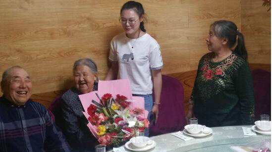圖為電氣化公司上海地鐵206標項目部為馮正奶奶送上鮮花與蛋糕