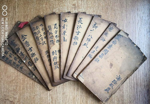 1984年1月1日,我所服役的鐵道兵部隊(duì)集體轉(zhuǎn)工并入鐵道部,我也由單位先后送到焦作中醫(yī)藥學(xué)校、河南中醫(yī)學(xué)院進(jìn)行了系統(tǒng)性的醫(yī)學(xué)專業(yè)學(xué)習(xí),正式考取了中醫(yī)師。雖在后來(lái)的企業(yè)幾次改制變動(dòng)中,兼任過(guò)段工會(huì)主任、干過(guò)指揮部辦公室主任,項(xiàng)目部書(shū)記等職,但立志懸壺濟(jì)世與治病救人的初心沒(méi)有改變。每次翻開(kāi)這些舊醫(yī)書(shū)時(shí),就會(huì)浮現(xiàn)出父親坐在火爐邊看書(shū)的身影,也更加覺(jué)得它的珍貴。為此我每次回老家文山村外魯時(shí),都是會(huì)特意從楠林橋下車(chē),再步行翻越銅盆嶺,走走父親帶我走過(guò)的鄉(xiāng)間小路,也會(huì)徒步登上芭蕉嶺到楊芳街,去看看我的舅舅、舅媽、老表們與那有著江南特色的謝氏民宅,見(jiàn)到那古香古色的老屋時(shí),總能勾起我許多兒時(shí)的回憶。記得外婆裹著小腳,晚年眼睛基本失明,每次去了她都要從頭到腳地全身摸一遍,還一邊念叨著,又長(zhǎng)了點(diǎn),或是胖了瘦了的。其實(shí)在我?guī)С鰜?lái)的家藏老醫(yī)書(shū)中,有一半以上是我外公留下的,據(jù)說(shuō)當(dāng)時(shí)每本需要一塊大洋才能買(mǎi)到,等于其時(shí)一擔(dān)谷的價(jià)值。