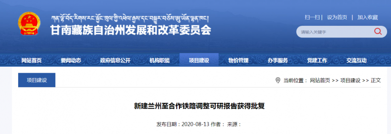 8月13日,為進一步完善區(qū)域快速鐵路網(wǎng)布局,改善沿線交通基礎(chǔ)設(shè)施條件,促進“三區(qū)三州”深度貧困地區(qū)群眾脫資致富和經(jīng)濟社會高質(zhì)量發(fā)展,國鐵集團、甘肅省人民政府同意調(diào)整新建蘭州至合作鐵路可研報告,并以鐵發(fā)改函〔2020〕290號對新建蘭州至合作鐵路調(diào)整可研報告予以批復(fù)。