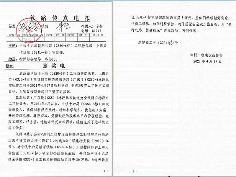 4月17日晚,由中鐵十六局二公司贛深高鐵6標二分部承擔施工的無砟軌道基礎(chǔ)實現(xiàn)圓滿收官,為下一步順利鋪軌施工奠定了堅實基礎(chǔ)。