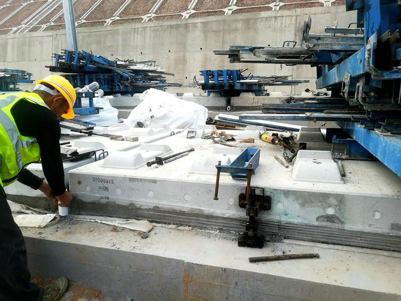 針對底座板所采取的主要措施,包括加強梁面拉毛、清理,嚴格控制每一根L型筋擰緊力矩,從而實現(xiàn)底座板與梁面牢牢結(jié)合防止離縫。