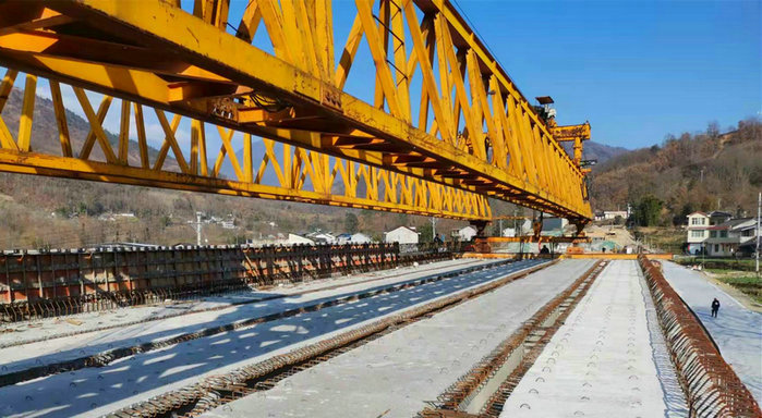 廣平高速公路TJ13合同段項目位于綿陽市平武縣境內(nèi),全長7.62公里,含大橋三座。此次順利貫通的蘇家壩大橋全長348米,架設(shè)T梁共計100榀(30m梁60榀,40m梁40榀),本次架設(shè)的最后一榀梁長40米,重125噸,采用專業(yè)架橋機架設(shè)。由于橋梁墩柱高,一定程度上增加了施工難度和安全風(fēng)險,在T梁架設(shè)過程中,項目安全、技術(shù)、質(zhì)量管理人員全程監(jiān)督控制,切實保障架設(shè)作業(yè)按照施工方案順利進行,實現(xiàn)了該大橋T梁安全架設(shè)無事故。