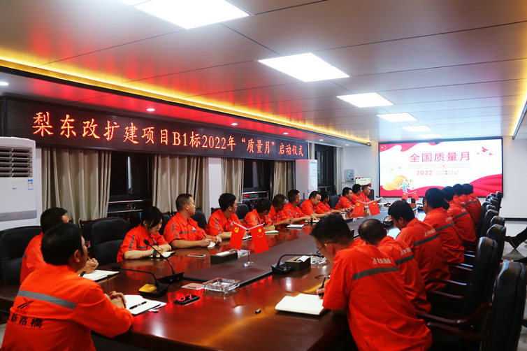 9月1日,北新路橋集團(tuán)長(zhǎng)沙分公司滬昆高速梨東改擴(kuò)建工程B1標(biāo)項(xiàng)目(簡(jiǎn)稱:滬昆B1標(biāo)項(xiàng)目)以“推動(dòng)質(zhì)量變革創(chuàng)新,促進(jìn)質(zhì)量強(qiáng)國(guó)建設(shè)”為主題的2022年“質(zhì)量月”活動(dòng)正式啟動(dòng)。該項(xiàng)目部全員參加啟動(dòng)儀式。