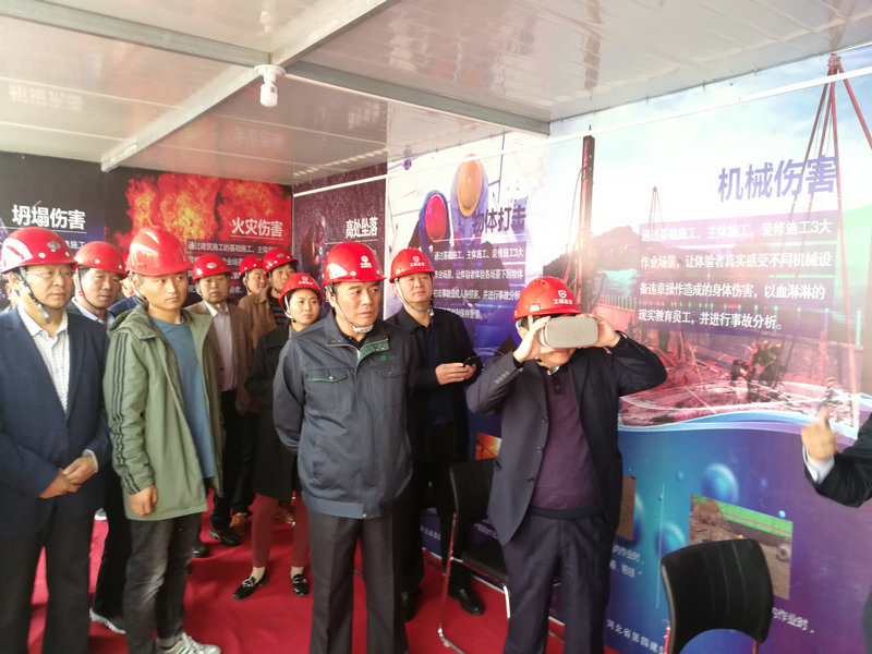 與會人員參觀了項(xiàng)目部的全方位噴淋系統(tǒng)、安全體驗(yàn)區(qū)和VR安全體驗(yàn)館,康會彩戴上眼鏡現(xiàn)場進(jìn)行了VR安全體驗(yàn),對項(xiàng)目部先進(jìn)的安全體驗(yàn)設(shè)備給予了表揚(yáng)。大家觀摩了模塊化防護(hù)欄桿、標(biāo)準(zhǔn)化鋼筋加工區(qū)風(fēng)險(xiǎn)區(qū)劃分、技術(shù)交底二維碼等創(chuàng)新應(yīng)用,并對項(xiàng)目部風(fēng)險(xiǎn)區(qū)劃分、將漫畫融入到圍擋中的做法給予了高度贊揚(yáng)。康會彩表示,中儲糧新樂項(xiàng)目部有很多方面值得學(xué)習(xí)和借鑒,希望觀摩單位認(rèn)真學(xué)習(xí),積極借鑒先進(jìn)的管理理念和做法,并在全市范圍內(nèi)推廣。