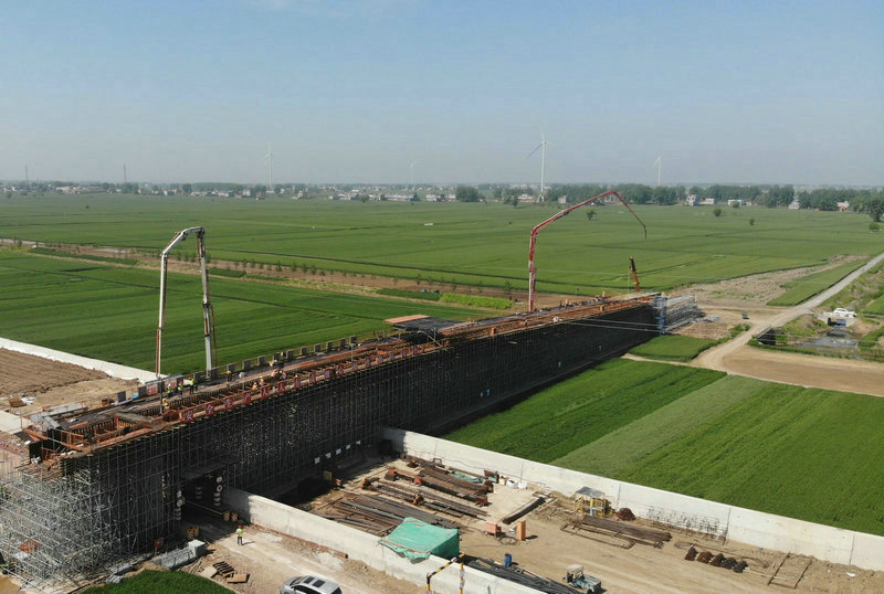 近日,在北新融建公司安徽宿固高速公路TJ04合同段項目K13+520天橋現(xiàn)澆箱梁施工現(xiàn)場,隨著工人的一聲呼喊,該橋梁最后一斗混凝土入模振搗完成,至此,該項目的分離式立交橋梁全部澆筑完成,也標志著該項目橋梁工程的主體全部完成,實現(xiàn)了又一重大節(jié)點的突破,為全線建成通車的目標按下了“快進鍵”。