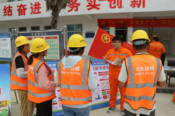 宿州訊(通訊員 晏泰杰 萬(wàn)廣舉)今年6月是第23個(gè)全國(guó)“安全生產(chǎn)月”,為普及安全生產(chǎn)法律法規(guī)和自救互救常識(shí),進(jìn)一步增強(qiáng)全項(xiàng)目安全防范意識(shí),提高一線工人及干部職工的應(yīng)急避險(xiǎn)和自救互救能力,推動(dòng)“安全生產(chǎn)月”宣傳活動(dòng)走深走實(shí)。6月16日,北新融建公司安徽宿固高速公路TJ04合同段項(xiàng)目經(jīng)理部開(kāi)展了以“人人講安全、個(gè)個(gè)會(huì)應(yīng)急--暢通生命通道”為主題的“6·16”安全宣傳咨詢?nèi)栈顒?dòng)。